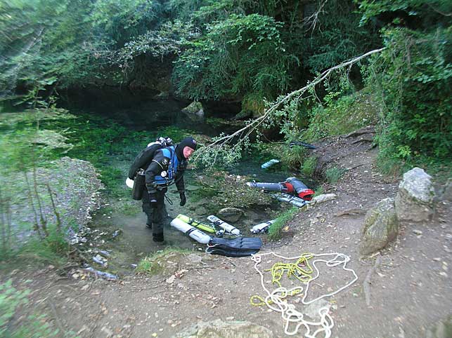Neben dem Finden neuer uns noch unbekannter Höhlen und dem Nehmen von GPS-Daten an bekannten Systemen sollte natürlich auch ein Tauchgang nicht fehlen.
