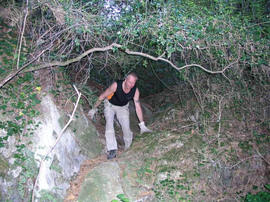 Dahinter fiel der Gang dann plötzlich über eine Halde führend sehr rasch ab in die Tiefe.