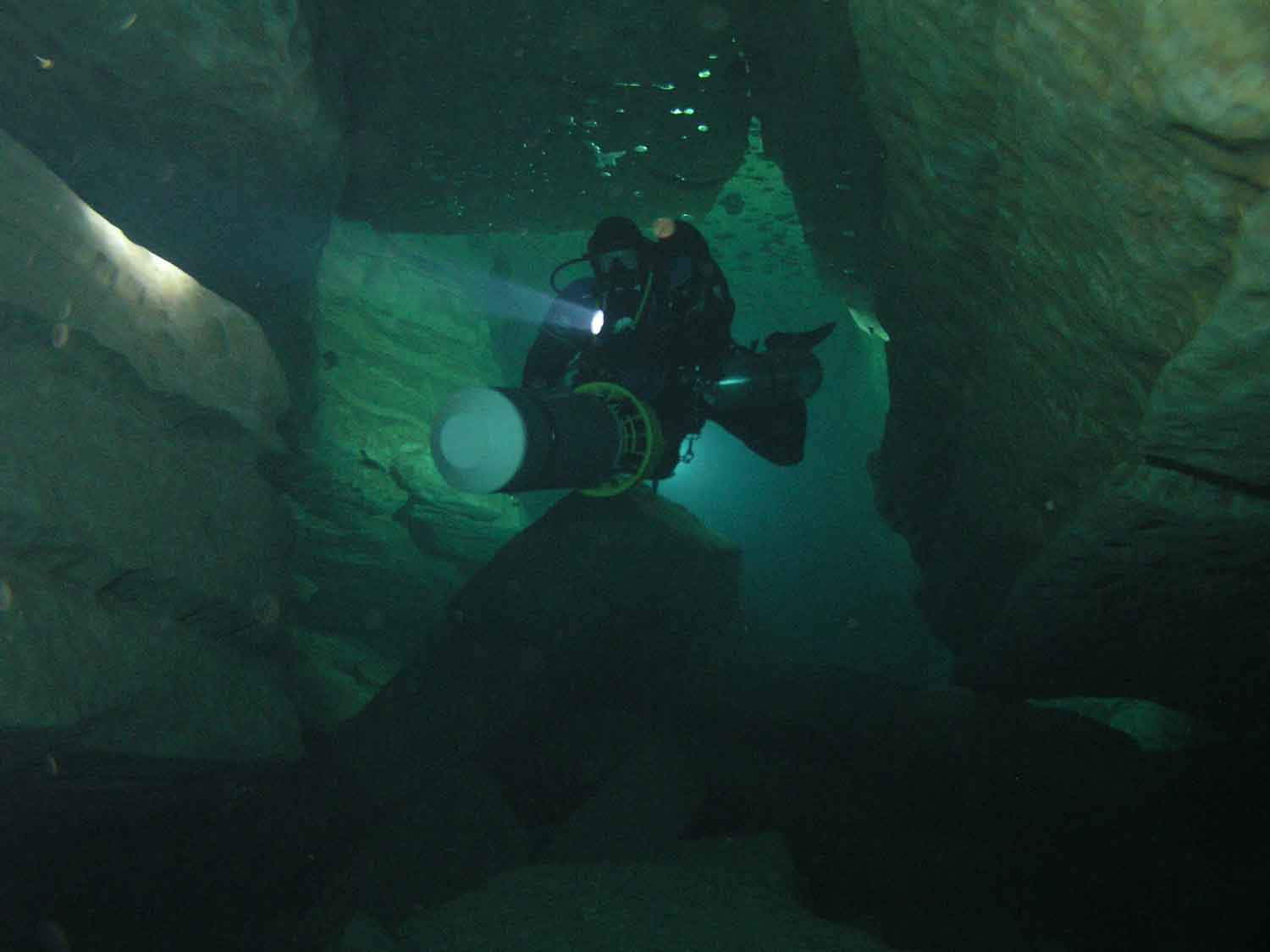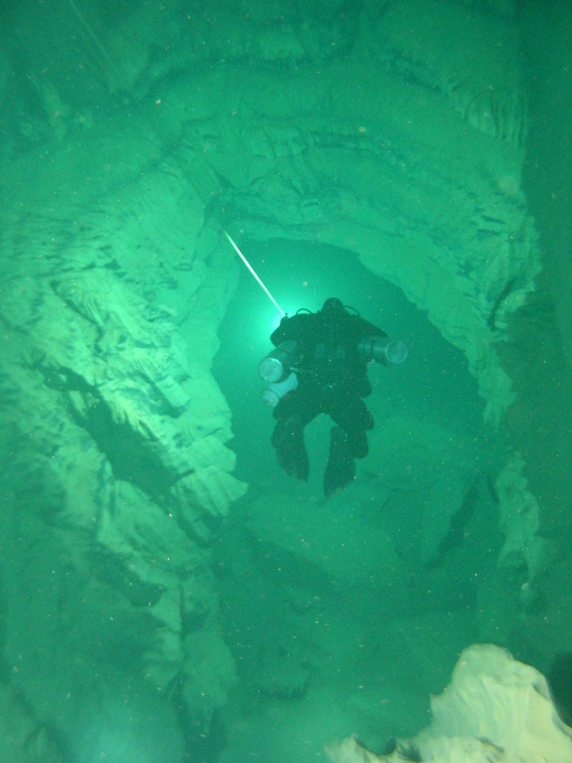 Nach einigen Stunden Schlaf suchten wir am frühen Abend die Lantouy zwecks Checken der Sidemountausrüstung auf. Hinein herrschte exzellente Sicht.