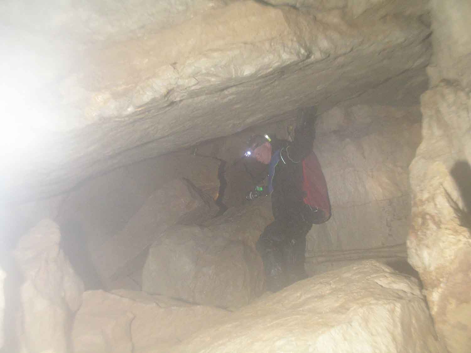 Allerdings verschlechterte sich die Sicht deutlich und wir verzichteten darauf. Auf dem Rückweg öffnete sich beim Durchgleiten einer Felsspalte unfreiwillig der Akkutank meiner HID und flutete das NiMh-Akkupack.