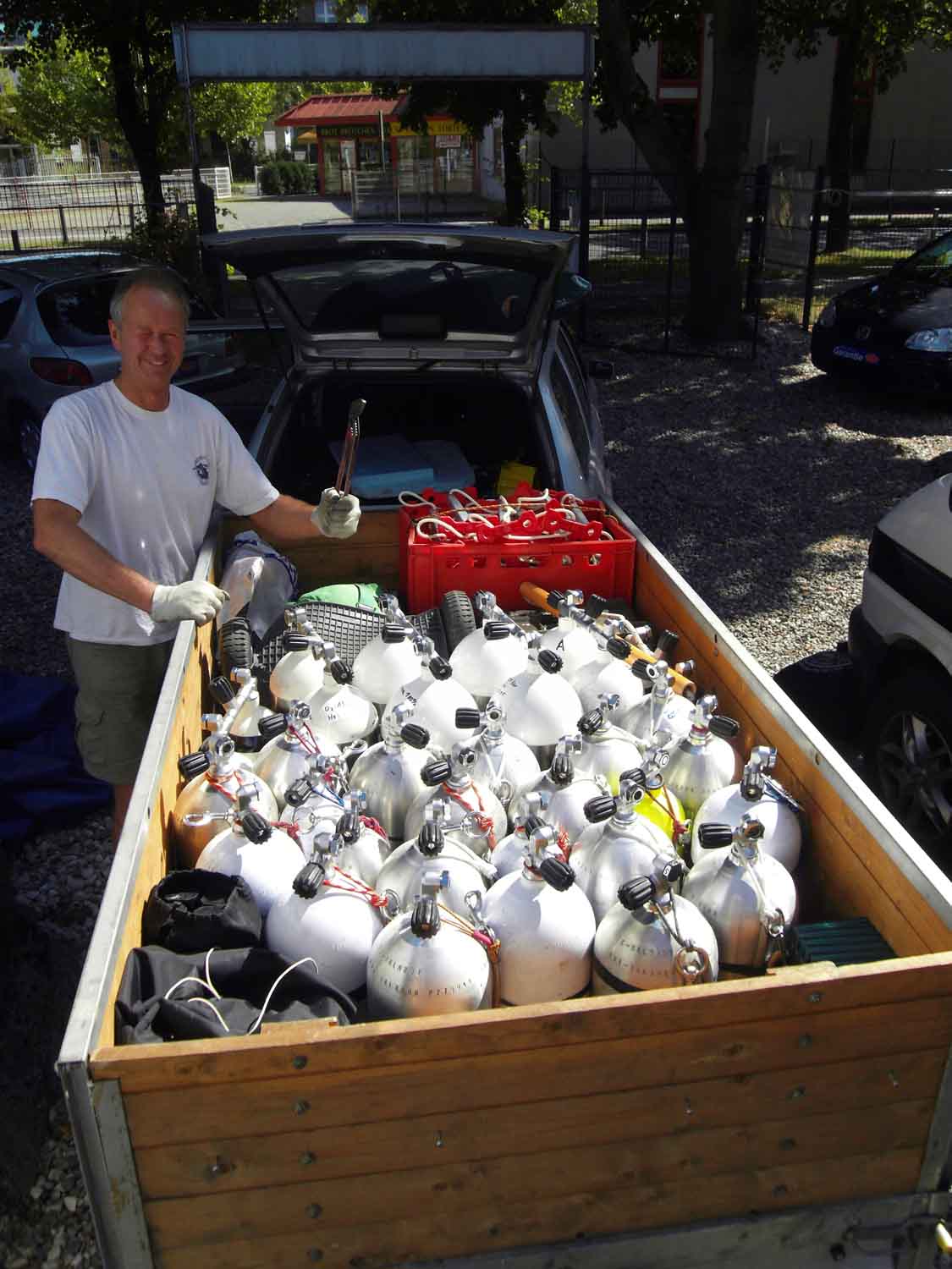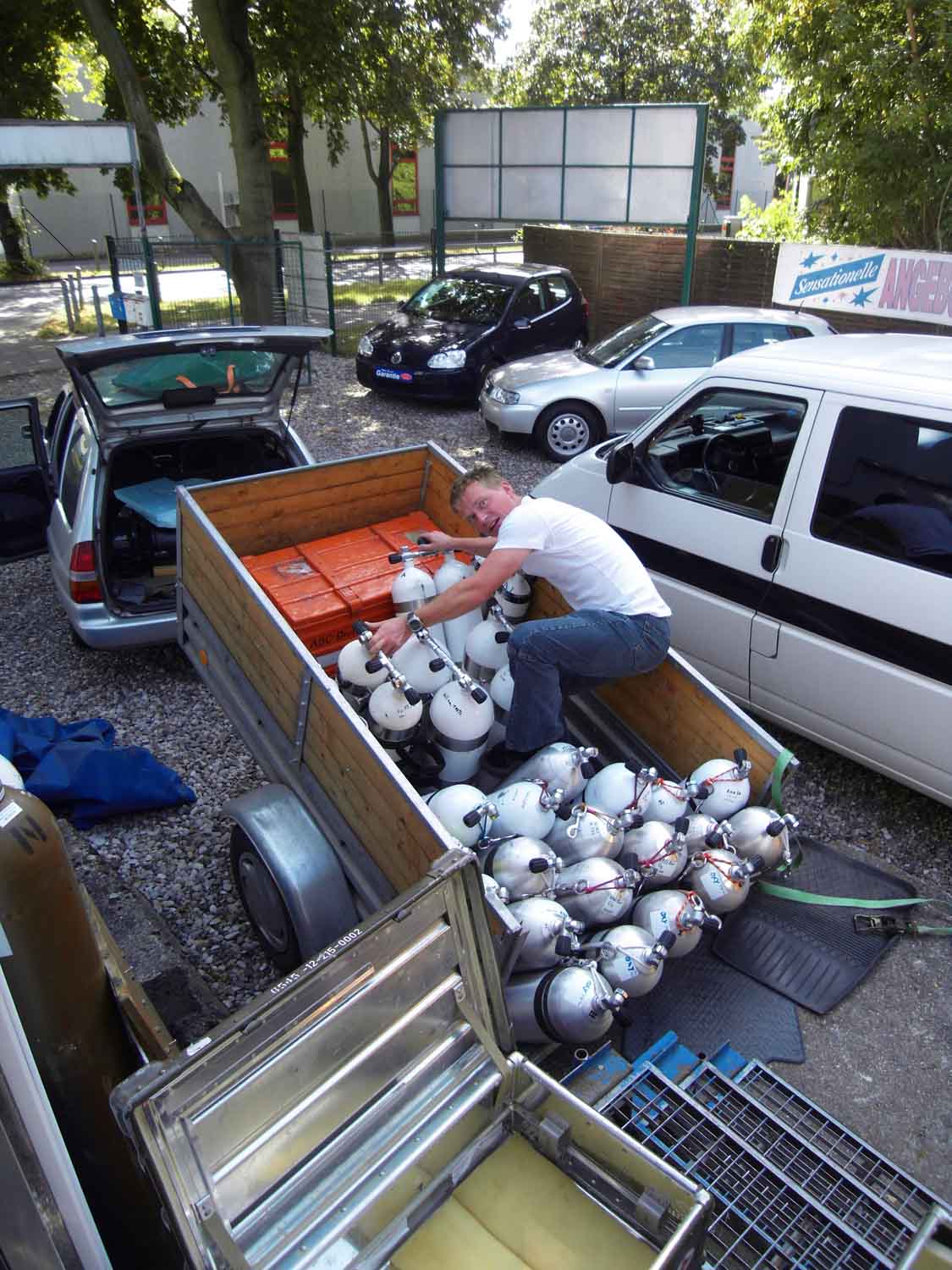 Da es ja jedes Jahr etwa genauso abläuft, was die Vorbereitungen für so eine Tour angeht, lass ich das mal weg. 30 Tauchflaschen zu befüllen und den Kram dann verladen ist doch nicht wirklich spannend und völlig ungefährlich, oder?!.