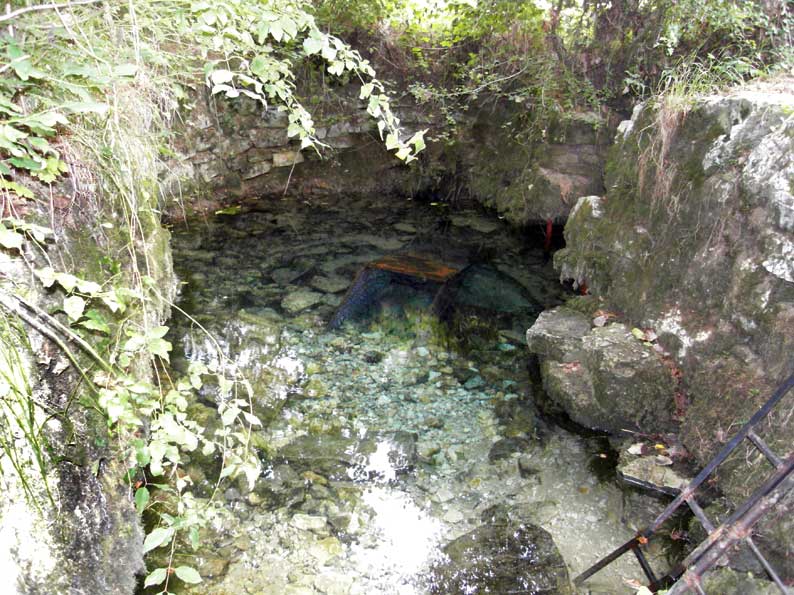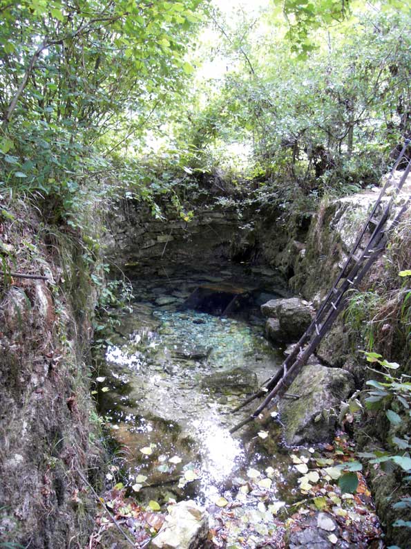 zum Verhindern nachrutschenden Gesteines. Das hervorquellende, klare Wasser zog uns aber in seinen Bann. |