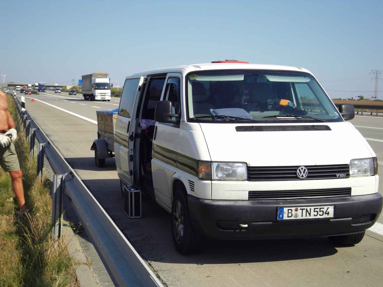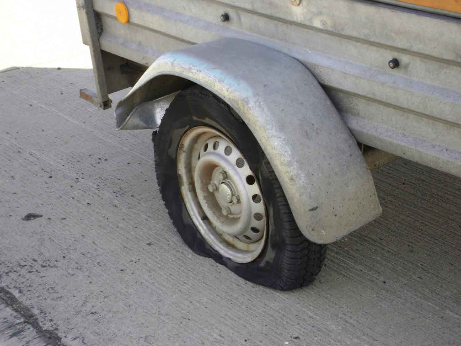 | Die Euphorie erhielt knapp 90min. später bei Magdeburg einen herben Dämpfer, als ein Reifen an meinem Anhänger sich in seine Bestandteile auflöste. ADAC informiert, Hänger abtransportiert zu ATU, dort bei 30°C drei Stunden die Zeit mit dem Wegschlürfen cooler Milchshakes totgeschlagen