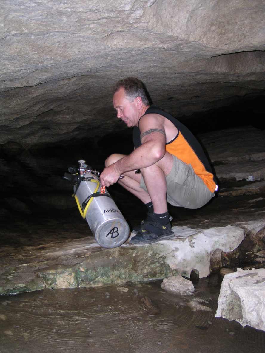 Das hatte nun zur Folge, dass unser erster Tauchgang in der Tannerie (eigentlich mit Scooter geplant aber vorsorglich im Wagen gelassen) nach rund 50m am trocken gefallenen Gang endete und ein Weiterkommen nur unter enormen Anstrengungen möglich gewesen wäre;-(