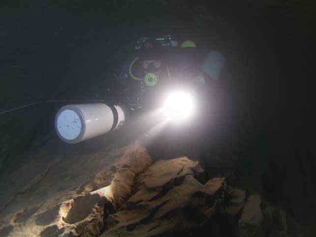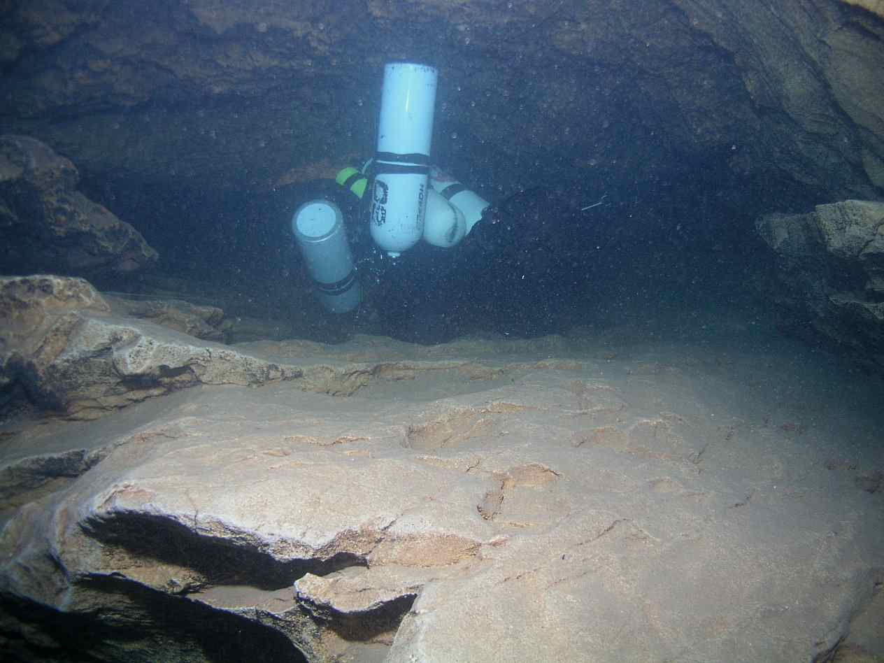 In einer Luftglocke entschieden wir uns, zurück zu tauchen, denn ein weiterer Vorstoß war sinnlos. |