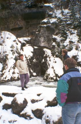 Freitag Vormittag machte ich mich auf den Weg nach München, um Ulrich Meyer dort einzuladen. Gegen 17Uhr ging es im schönsten Berufsverkehr weiter. Je dichter wir der Grenze kamen, desto mehr zog sich der Himmel mit Regenwolken zu. Keine gute Sache, wenn man bedenkt, dass es gerade tiefster Winter war! In strömendem Regen kamen wir gegen 22 Uhr in unserīm Quartier nahe der Lison-Quelle an. Dort trafen wir uns mit Bernd Aspacher und Matthias Fischer. Es regnete die komplette Nacht hindurch. Am kommenden Morgen schwante uns nichts Gutes, als wir zur Doubs-Quelle fuhren. Und in der Tat: Sie schüttete gewaltige Wassermassen aus! |  |