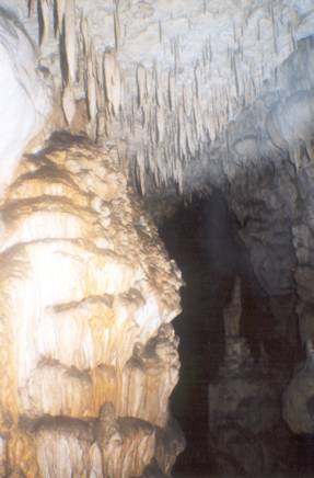 | Unten angekommen, machte sich Uli sofort auf den Weg nach oben inclusive meines Kletterzeuges, um es an die oben Wartenden weiterzugeben. Ich erkundete derweil die prachtvolle Höhle. Unzählige Tropfsteinformationen in riesigen Ausmaßen umgaben mich! |  |