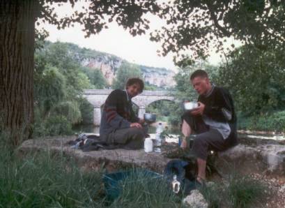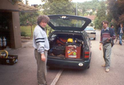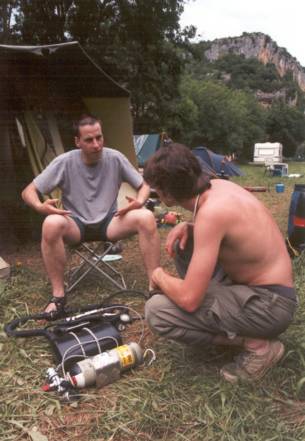 Dummerweise gab Bernd´s Kompressor beim ersten Füllversuch den Geist auf, aber Duncan, einer der frdl. Helfer Rick´s, gab uns den Tip, dass es in Gramat eine Füllanlage gäbe. Das war die Rettung, denn wir konnten nicht ständig bei Ralph Wilhelm, der auch in St. Sulpice verweilte, füllen. |  |