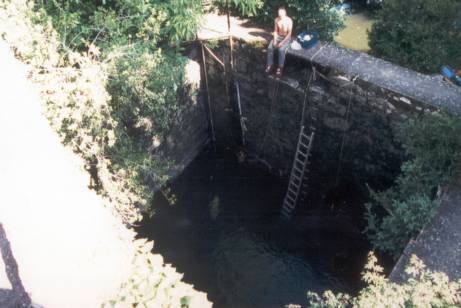 Da sich der Tag nun schon wieder dem Ende neigte, blieb für einen Aklimatisierungstauchgang die nur wenige Kilometer entfernte "RESSEL" übrig. Voll freudiger Erwartung ging es zum Flüsschen Céle hinunter, dann flösselnd ein Stück im Fluss entlang bis an den Eingang. Ich erwartete nach den Erfahrungen vom letzten Jahr wenigstens 15m Sicht. Leider waren die Bedingungen dann nicht ganz so toll wie erhofft! Aufgrund schlechter Sicht fanden wir den Eingang im Flussbett nicht sofort. Als er dann zum Vorschein kam, veränderte sich an der schlechten Wasserqualität rein gar nichts! Beim Hineingleiten schwand die Hoffnung zusehends, einige Meter tiefer in der Höhle bessere Bedingungen vorzufinden. Sebastian schwamm vor mir her und doch waren nur seine Flossenspitzen erkennbar, obwohl er kaum mehr als 1m entfernt war. Nach gut 250m gab ich das Umkehrzeichen, denn es hatte wenig Sinn, weiterzutauchen. Zurück im Fluss mimte ich betretene Miene. Soviele angewandte Überredungskünste und dann das!!! Es sollte noch schlimmer kommen! Beim Ausziehen des Trocki´s hatte mein Freund plötzlich einen Teil seiner Halsmanschette an der Kopfhaube! Sie hatte sich regelrecht zersetzt (vermutlich durch Öl o. Benzin des Kompressors?!). Der Tag war gelaufen. Den Abend nutzten wir zur Reparatur des Trocki´s