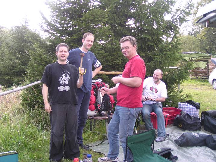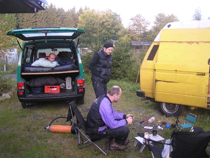 Interessant, was es doch so alles Höhlenartiges in Deutschland gibt! Meine Freunde aus Sachsen luden mich im Oktober ein, ein von ihnen recherchiertes Stollensystem zu betauchen! Da liess ich mich natürlich nicht lumpen und fuhr an einem Freitag Abend runter. Leider hatte ich so meine Probleme mit der Anfahrtsbeschreibung, was mein Eintreffen um ca. 1 1/2h auf 23 Uhr verlagerte. Hoffen aus Berlin, Olaf, Lutzemann und Peter Pan(itz) sassen da schon längst am wärmenden Lagerfeuer. Ich wurde nicht mehr sehr alt und legte mich im Bus schlafen.